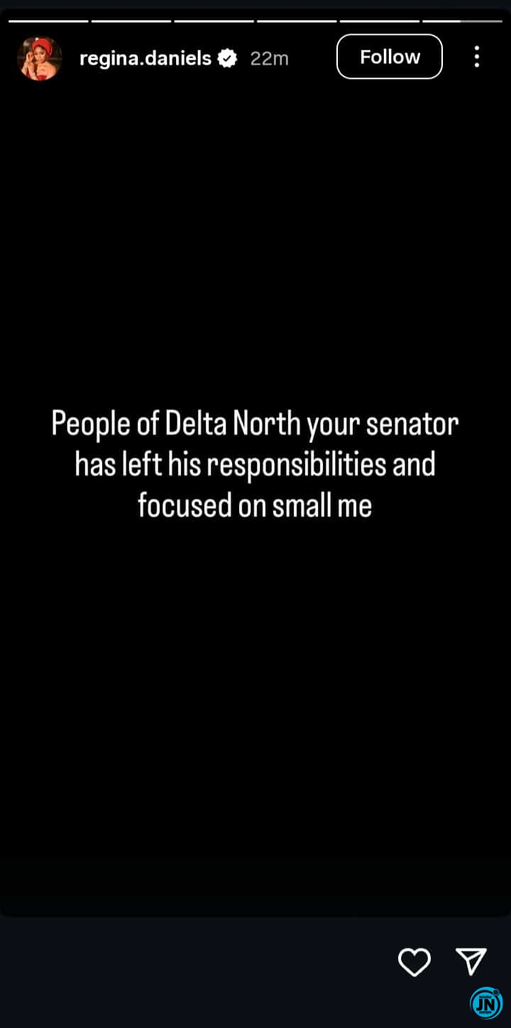 Regina further alleged that Ned Nwoko was trying to use a “fake drug report” in an attempt to take custody of their children. She accused him of forming a political “camp” against her despite the huge age gap between them, describing the situation as both humiliating and desperate.