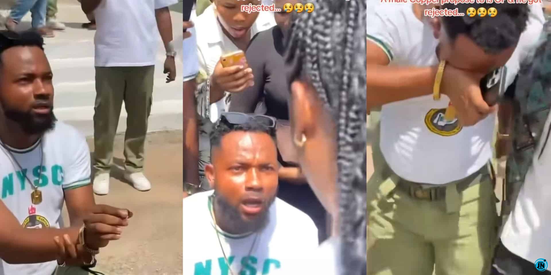 A heartbreaking moment involving a corper has gone viral after his fellow corps member and girlfriend rejected his emotional public proposal during their Passing Out Parade (POP) ceremony.