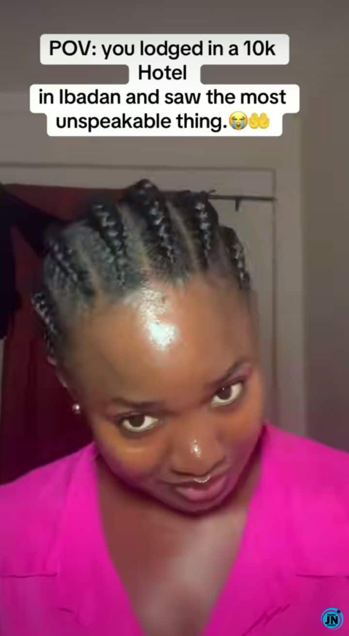 A Nigerian lady has taken to social media to recount a shocking experience she had in a hotel room in Ibadan, which she booked for ₦10,000. The video, which has since gone viral, provides a glimpse into the unexpected state of the accommodation she encountered.