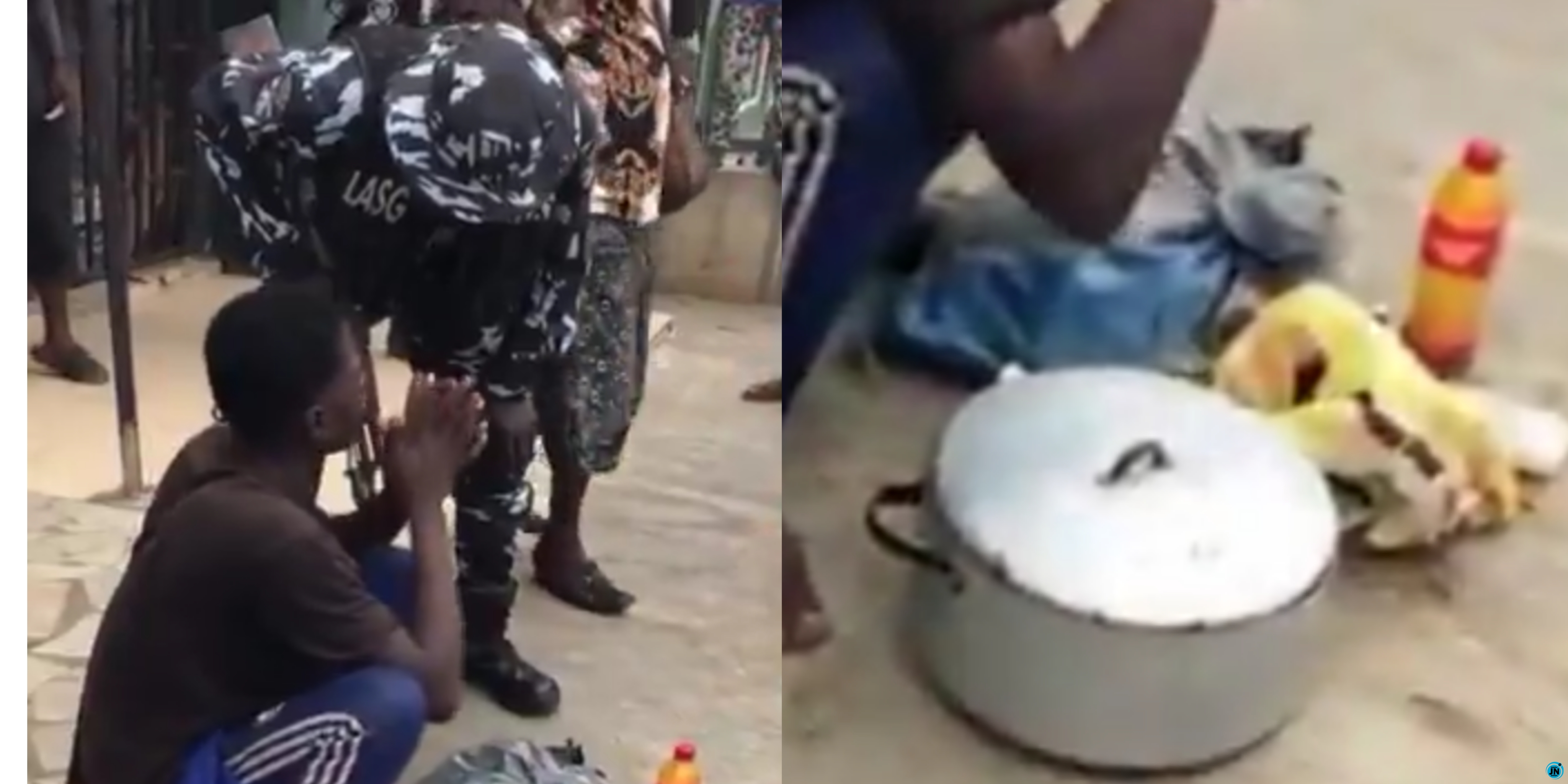 Wahala! Drama as man gets arr£sted after allegedly st£aling a pot of stew from the neighborhood 👀 pic.twitter.com/qK0SOQdL9f