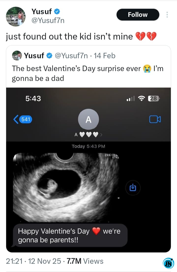Fast forward to November, Yusuf returned to social media to reveal a heartbreaking twist. He disclosed that he recently learned the child he had been excited to welcome is not biologically his. The revelation has left him in a state of emotional turmoil, grappling with the reality that his anticipated journey into fatherhood would not unfold as expected.