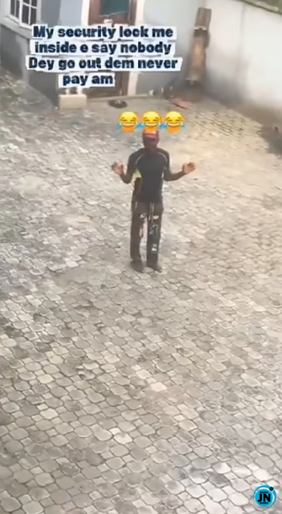 “Nobody is going out of this compound until my salary is paid,” the security man was heard saying in the video. The situation quickly drew attention online, with many expressing opinions about the fairness of the security guard’s actions.